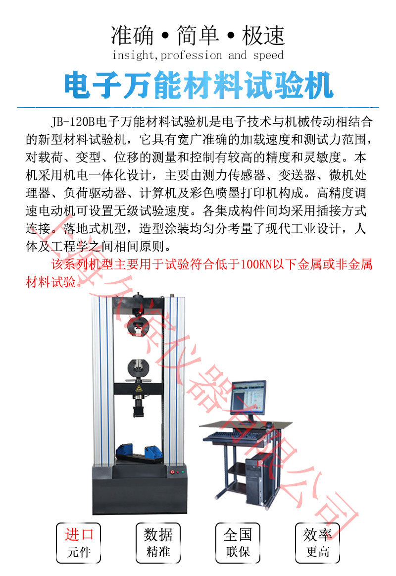 JB-120系列電子萬能材料試驗機是電子技術(shù)與機械傳動相結(jié)合的新型材料試驗機,它具有寬廣準確的加載速度和測試力范圍,對載荷、變型、位移的測量和控制有較高的精度和靈敏度。本機采用機電一體化設(shè)計,主要由測力傳感器、變送器、微機處理器、負荷驅(qū)動器、計算機及彩色噴墨打印機構(gòu)成。高精度調(diào)速電動機可設(shè)置無級試驗速度。各集成構(gòu)件間均采用插接方式連接。落地式機型,造型涂裝均勻分考量了現(xiàn)代工業(yè)設(shè)計,人體及工程學(xué)之間相間原則。