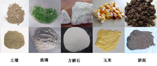 ◆ 土壤、煤、焦炭、巖石礦物 、玻璃、 植物、農產品、材料、建筑原料、藥品、陶瓷、食品、香料、水泥等