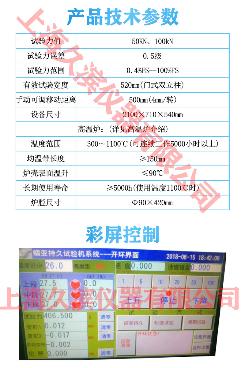 電子式蠕變及持久強度試驗機, 是依據JJG276-2009 《高溫蠕變、持久強度試驗機檢定規程》和JJF 1298-2011《蠕變持久、強度試驗機型式評價大綱》設計生產,是配有全數字化測量控制系統的試驗機。它全面滿足GB/T2039-1997《金屬拉伸蠕變及持久試驗方法》的要求,該設備主要用金屬材料在高溫或室溫環境下進行拉伸蠕變及持久性能試驗,同時還可做瞬時拉伸試驗也可做動態拉伸試驗、松弛試驗、疲勞強度試驗等,是冶金部門、電力系統、科研單位、大專院校、航空航天及企業單位進行金屬材料性能的檢驗和科研項目常用設備。