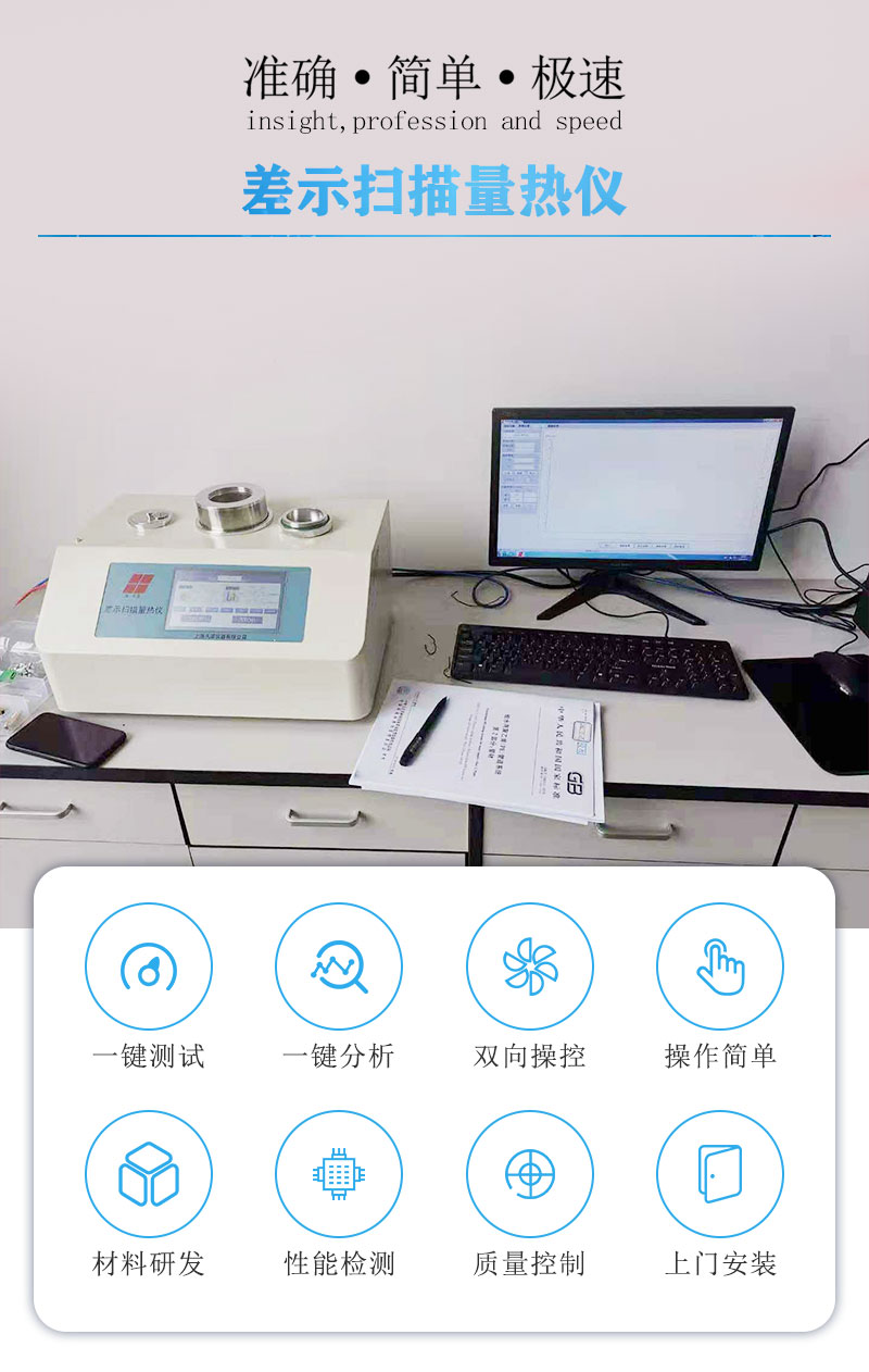 差示掃描量熱儀是一種測量參比端與樣品端的熱流差與溫度參數關系的熱分析儀器,主要應用于測量物質加熱或冷卻過程中的各種特征參數:玻璃化轉變溫度Tg、氧化誘導期OIT、熔融溫度、結晶與結晶熱、藥物的多晶型現象、固化/交聯、比熱容及熱焓、相轉變反應熱、產品的熱穩定性、熔點等。