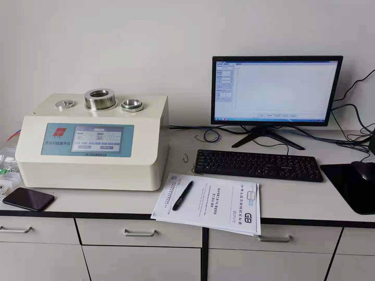 JB-DSC-750L差示掃描量熱儀是一款熱分析儀器,它是在程序控制下測量物質與參比物之間單位時間的能力差隨溫度變化的一種技術。可用于測量高分子材料在內的固體、液體材料的熔點、沸點、玻璃化轉變、比熱、結晶溫度、結晶度、純度、反應溫度、反應熱等等,應用的領域較多,通過對不同物質的測量,對數據進行分析。 山東大亞海洋選購JB-DSC-750L液氮制冷差示掃描量熱儀的決定,相比于傳統的熱分析方法,我們的差示掃描量熱儀具有jīng確度高、穩定性好、操作簡便等特點外還能快速地得到熱性質變化。同時,我們也提供了完善的售后服務和技術支持,確保客戶在使用過程中能夠得到及時的幫助和解決方案。JB-DSC-750L液氮制冷差示掃描量熱儀——現場交機調試圖