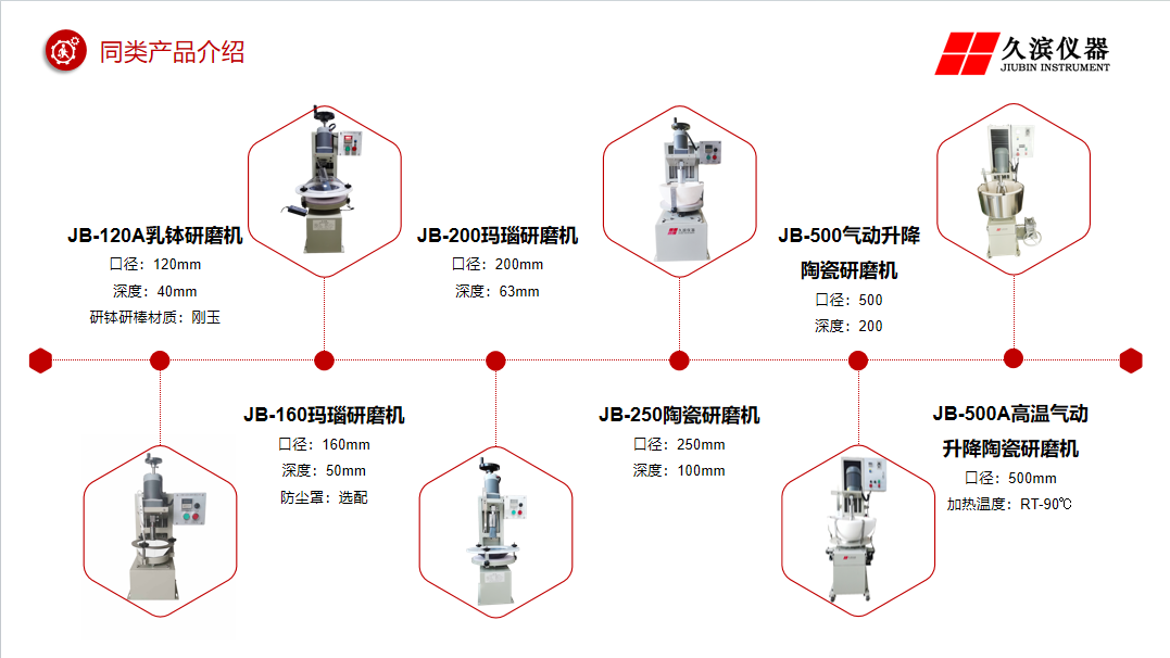 JB-500氣動升降研缽式研磨機的工作過程在剛玉研缽旋轉中研棒對研缽中的固體顆粒進行碾壓使固體顆粒變小變細,同時研缽圓形弧度基于科學設計可以使得邊緣的顆粒因刮刀回到研缽中繼續進行碾磨,這也會讓碾磨后的微粉粒度均勻。